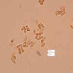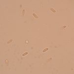 5-6 x 2.5-3.5 µm, valjasto elipsasti, gladki, hialini.