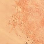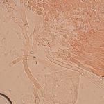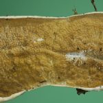 Zelo tanko, mehko, nekoliko usnjato, belkasto do svetlo oranžno, brez posebnega vonja ali okusa, ob rezu brez barvnih sprememb, pri sušenju postane trdo in krhko.