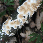 Raste na spodnjih straneh odmrlih vej različnih listavcev, vse leto.