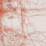 4.2-6.8 x 3.4-4.2 μm, elipsasti, gladki, hialini. Trosni prah je bel.