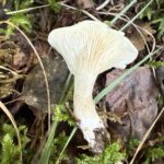 Do 3 cm visok in do 1 cm debel, valjast, ukrivljen, poln, običajno ni točno v sredini klobuka, stranski, belkast in ima opredeno dnišče, podobno kot gobe iz rodu livk.