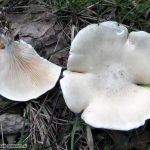 To srednje veliko, belo-sivkasto gobo spoznamo po rožnatih lističih, ki se polagoma spuščajo po betu, po močno podvitem robu in značilnem, močnem vonju po moki.