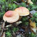 Najprej polkrožen, kmalu se razširi do 8 cm v širino. Na okrasti podlagi je prekrit z rdečkasto-rjavimi luskami, ki postajajo s starostjo vedno bolj redke in ustvarjajo videz razpokane površine.