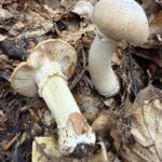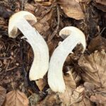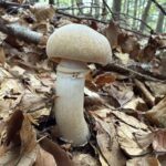 6-15 x 1-2 cm, valjast, poln, svilasto svetleč, bel, vlaknat, proti dnišču debelejši, okrast, ima obstojen kožast obroček, ki šele pri zelo starih gobah odpade.