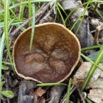 Nahaja se na notranji nagubani strani čaše, rdečkasto rjave do rjave barve.