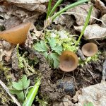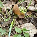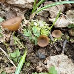 Do 3 cm širok, sprva kroglast, kasneje se lijasto odpre in splošči. Rob je rahlo dvignjen. Gornja površina je kostanjevo do rdečkasto rjava, gladka, spodaj ali zunaj svetleje rjav, gladek.