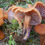 Lističi so sivo rožnati, široki in široko pripeti na bet.