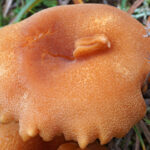 Od 15 do 50(100) mm širok, polkrožen do izbočen, včasih rahlo udrt z grbo podobno popku, kasneje več ali manj zravnan. Rob je sprva podvit in raven, kasneje nazobčan in brazdast. Površina je fino zrnata do vlaknato luskasta, ko je vlažna, je cimetasto rjava do rožnato oker, suha mesno oker.
