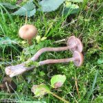 Od 40 do 80 mm visok in od 4 do 8 mm debel, valjast, žilav, sivo rožnat do rjavkast, spodnji del vijoličast.