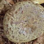 Od 4 do 10 cm širok, olivno siv do sivo zelen, s temnejšimi, koncentrično razporejenimi lisami. Sprva sploščen, nato v sredini udrt. Površina lepljiva.