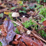 Od 2.5 do 6 (10) mm v premeru, polkrožen, oblike padala, vzdolž nažlebkan, v sredini udrt z majhno temnejšo grbico, rob klobuka je valovit. Površina je gladka, nesvetleča, belkasto kremasta, starejša rjavkasta.