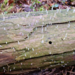Trosnjak je valjast, rahlo vretenast, 3-10 (20) x 0.3-0.8 mm, vijugast, ponavadi brez vej, redko enkrat ali večkrat viličasto razcepljen, vrh je koničast, dnišče ozko, pecljasto, včasih opredeno z belim micelijem. Površina je gladka, brez leska, belkasta do rumenkasto okrasta, v starosti rjavkasta do črnikasta.