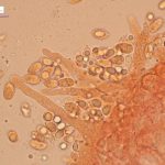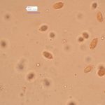 7-11 x 5–6.5 µm, Q 1.5-2.1, elipsasti, gladki, amiloidni.
