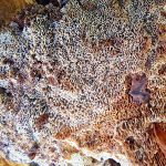 Luknjičasta, siva do sivo rjava, luknjice so nepravilno okrogle do oglate, večje proti robu.