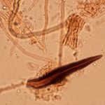 30-40 x 15-20 mm, stožčast, ukrivljen, žametast, rjasto rjav.