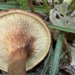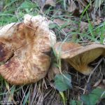 Močno podvihana, žametasta, z daleč na bet priraščenimi lističi, ki na pritisk v trenutku močno porjavijo.