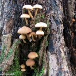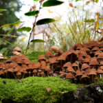 Raste na vlažnih mestih, pod drevjem, okoli panjev in na ostankih lesa, od pomladi do pozne jeseni, na Bovškem kar pogosta.