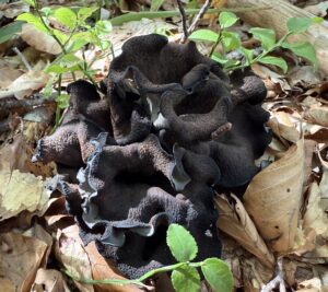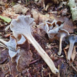 Od 1 do 5 cm, ima obliko trobente, mlad je lijast, pozneje pa nepravilno lijast in z nepravilno vijugasto razcepljenim robom, ki ja zavihan navzdol ali navzgor, vlaknat, ilovnato sivo rjave barve ali orehovo rjave barve, lahko tudi rjavkasto črn, rob je svetlejši in včasih bele do okraste barve, spodnja stran klobuka je žilasto rebrasta in sivo rjavo rumena do rjavo rumena.