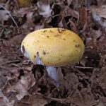 Majhen, največ do 5 cm širok, gladek, najprej izbočen in rumen, razprt ima rumeno osredje udrto, gladko obrobje je nekoliko svetlejše.