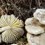 Lističi gosti, beli, ob robu klobuka dobivajo citronasto rumene lise, nikolo ne postanejo sivi!!